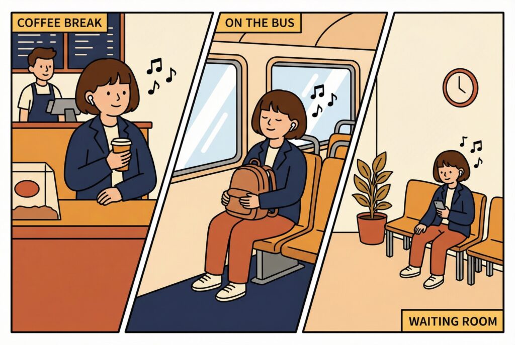 Waiting for coffee? Do a quick interval drill. On the bus? Practice identifying chord qualities.
